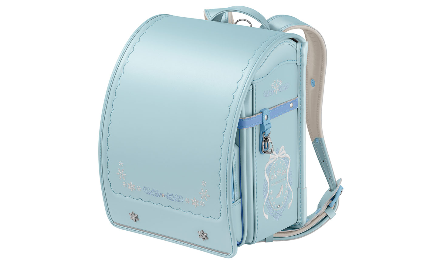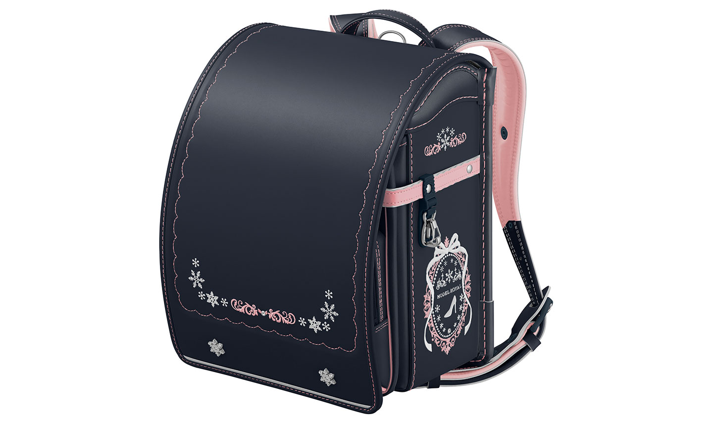 女の子をかわいらしく魅せるスウィートさと気品をあわせもつ、ロマンティックなデザイン。全体的にちりばめられた刺しゅうや、クリスタル・ガラスを使った飾り鋲(びょう)など、あちこちに雪の結晶モチーフを採用。やわらかなペールトーンのカラーとともに、透明感のある美しい世界感を演出します。直営店限定カラーのジュエルホワイト×シャーベットミントや、取り扱い店舗限定カラーのカシスピンク×ベビーピンク、ネイビー×ベビーピンクを加えた8色展開です。